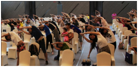 参会家庭学习做健身操